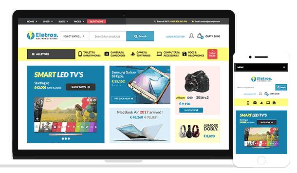Những kho hàng điện tử cồng kềnh của quá khứ đã biến mất mãi mãi. Từ bây giờ bạn có thể xây dựng một cửa hàng Thương mại điện tử tiên tiến mà không gặp rắc rối; và bán máy tính, điện thoại thông minh, máy tính bảng, các trang web liên kết và bất cứ thứ gì khác với sự trợ giúp của chủ đề WooCommerce với thiết kế đa dụng linh hoạt của VG Eletros – Electronics Store. Nó được xây dựng cho WordPress và WooCommerce, có nghĩa là nó không chỉ là một mẫu thương mại điện tử thông thường. Nếu mục đích của bạn là tạo ra một đại diện trực tuyến bền vững cho doanh nghiệp của bạn, chủ đề WooCommerce này chỉ là những gì bạn cần.